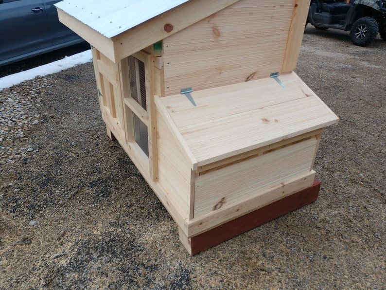 - Large Access Doors: Easy cleaning and egg collection, including a pull-up side door for nesting boxes